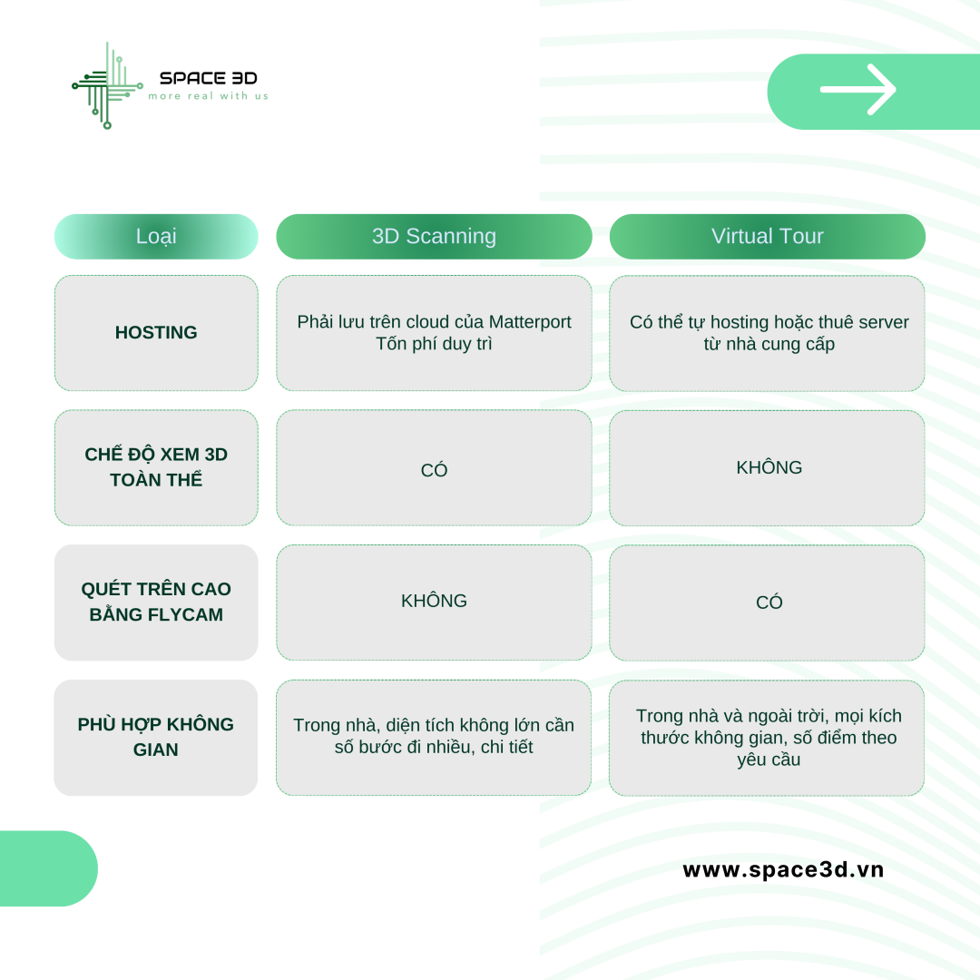 Sau khi đọc qua bài viết này của Space 3D, ngay cả khi bạn không phải là chuyên gia trong lĩnh vực này, bạn vẫn có thể phân biệt giữa VR360 Virtual Tour và Matterport 3D Scanning dựa trên các tính năng và ứng dụng cụ thể của chúng.